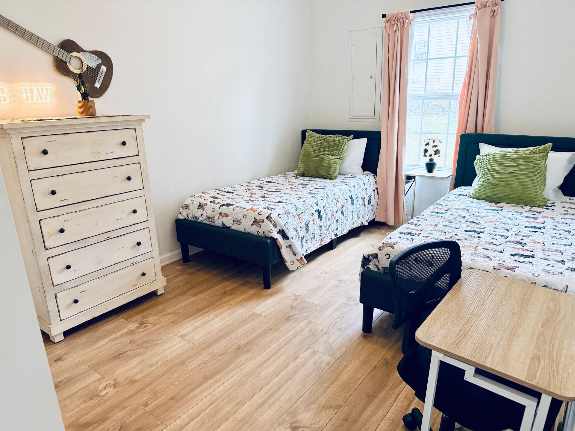Fun Music City decor, high ceilings, thoughtful touches, and plenty of off-street parking and space to unwind. Head next door or across the street to the park and farmer's market, with splashpad, playground, basketball court, picnic pavilion, and hiking trails.